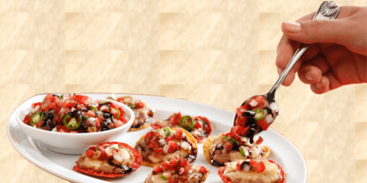 Tortilla frita, pico de gallo, salsa y queso