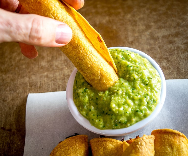 Pollo aderezo Eschillhadas, jalapeños y queso y guacamole